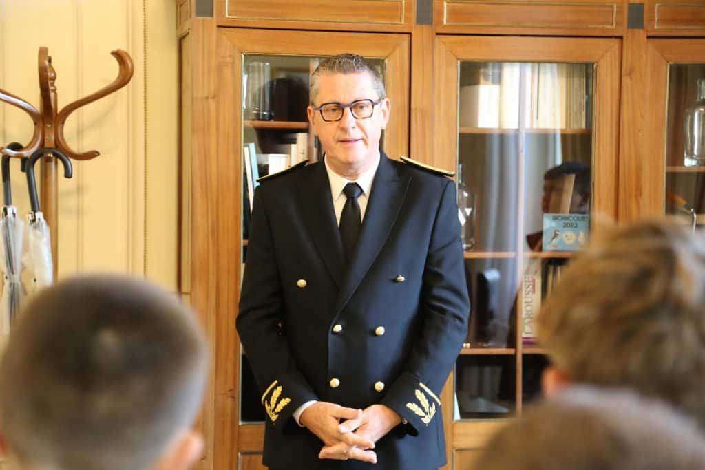 Le sous-préfet Laurent Guillemot, accompagné de Florian Mellinger, secrétaire général de la sous-préfecture, a reçu les jeunes conseillers dans le prestigieux cadre de l’Hôtel de Riencourt. Après une présentation de son parcours et de ses missions, le représentant de l’État a expliqué la symbolique de l’uniforme qu’il porte lors des cérémonies officielles : les feuilles d’olivier, héritées de l’Antiquité, représentent la sagesse, tandis que les feuilles de chêne symbolisent la force et la durabilité.