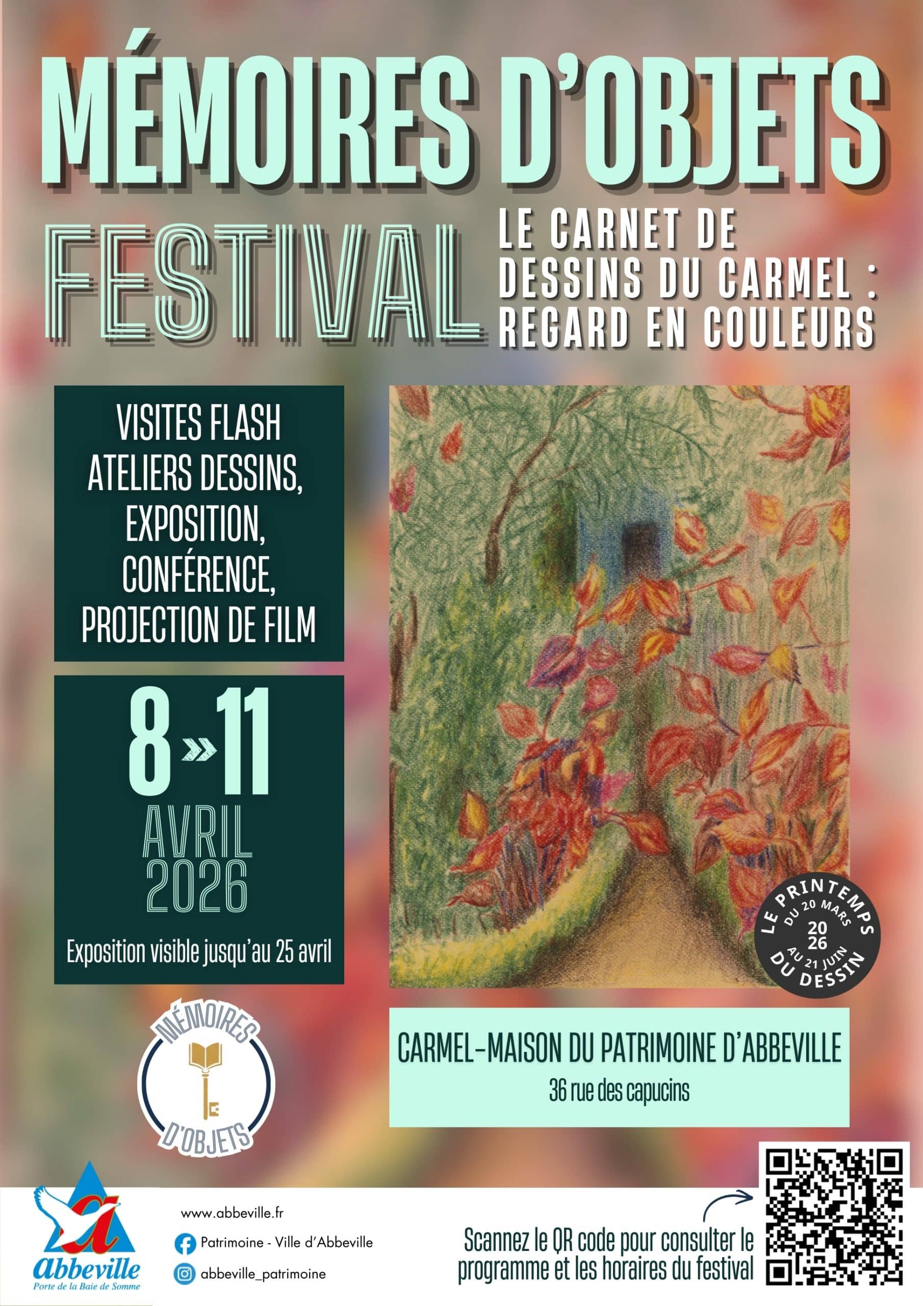 Pour sa première édition, le festival met à l’honneur la pratique du dessin, et plus particulièrement un carnet exceptionnel réalisé par une sœur carmélite d’Abbeville. Ce carnet, composé de dessins au crayon de couleur et réalisé entre 1955 et 1956 par sœur Marie-Thérèse de la Sainte-Face, offre un témoignage intime de la vie conventuelle au milieu du XXe siècle.