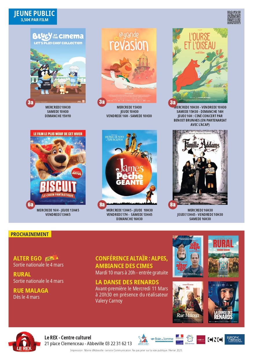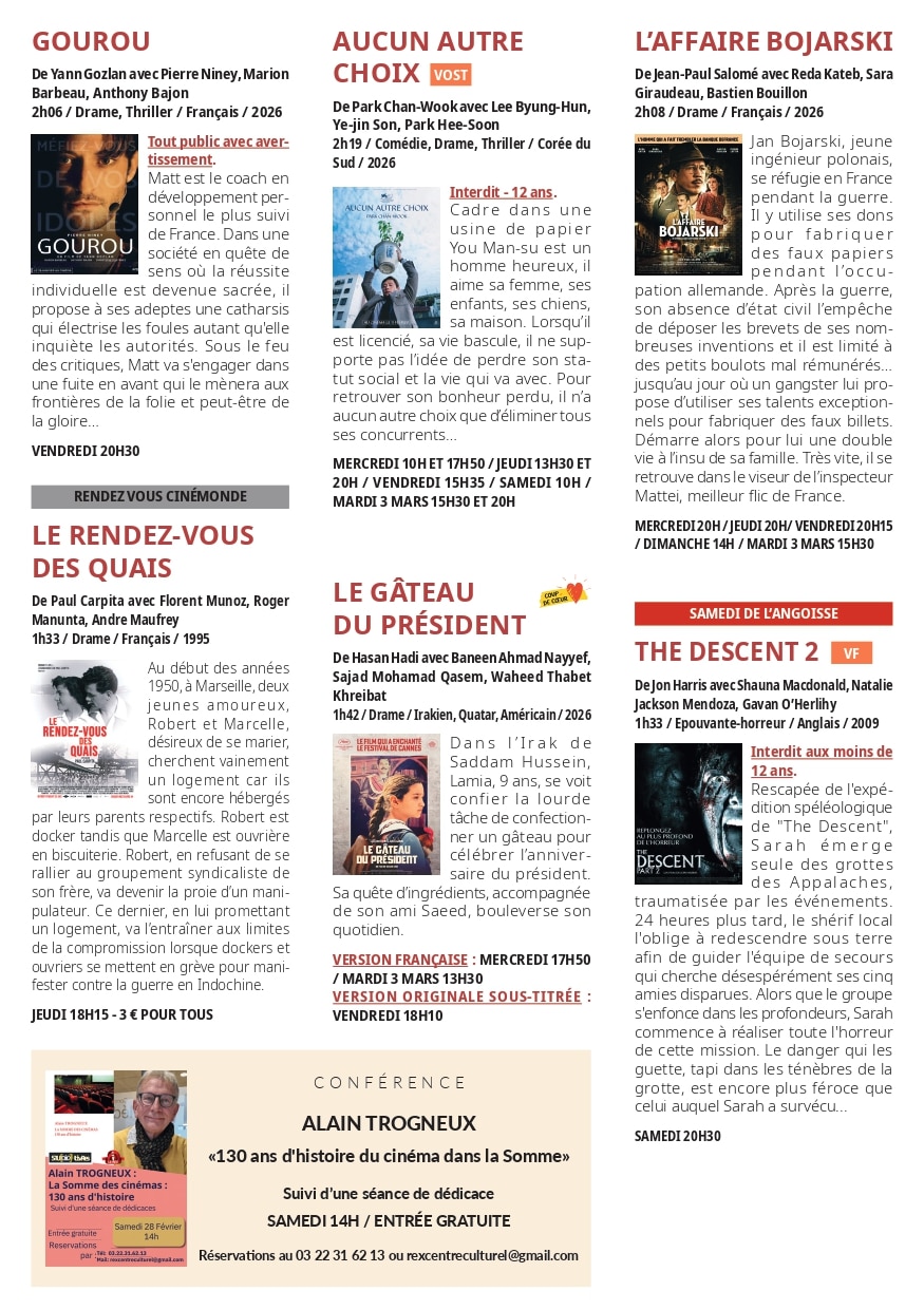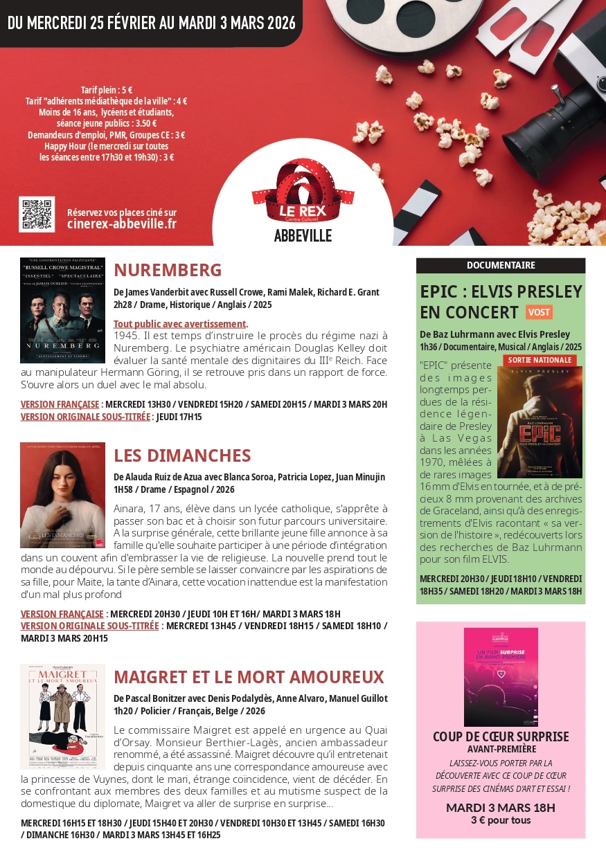 Programme cinéma Le Rex-Centre culturel du 25 février au 3 mars 2026