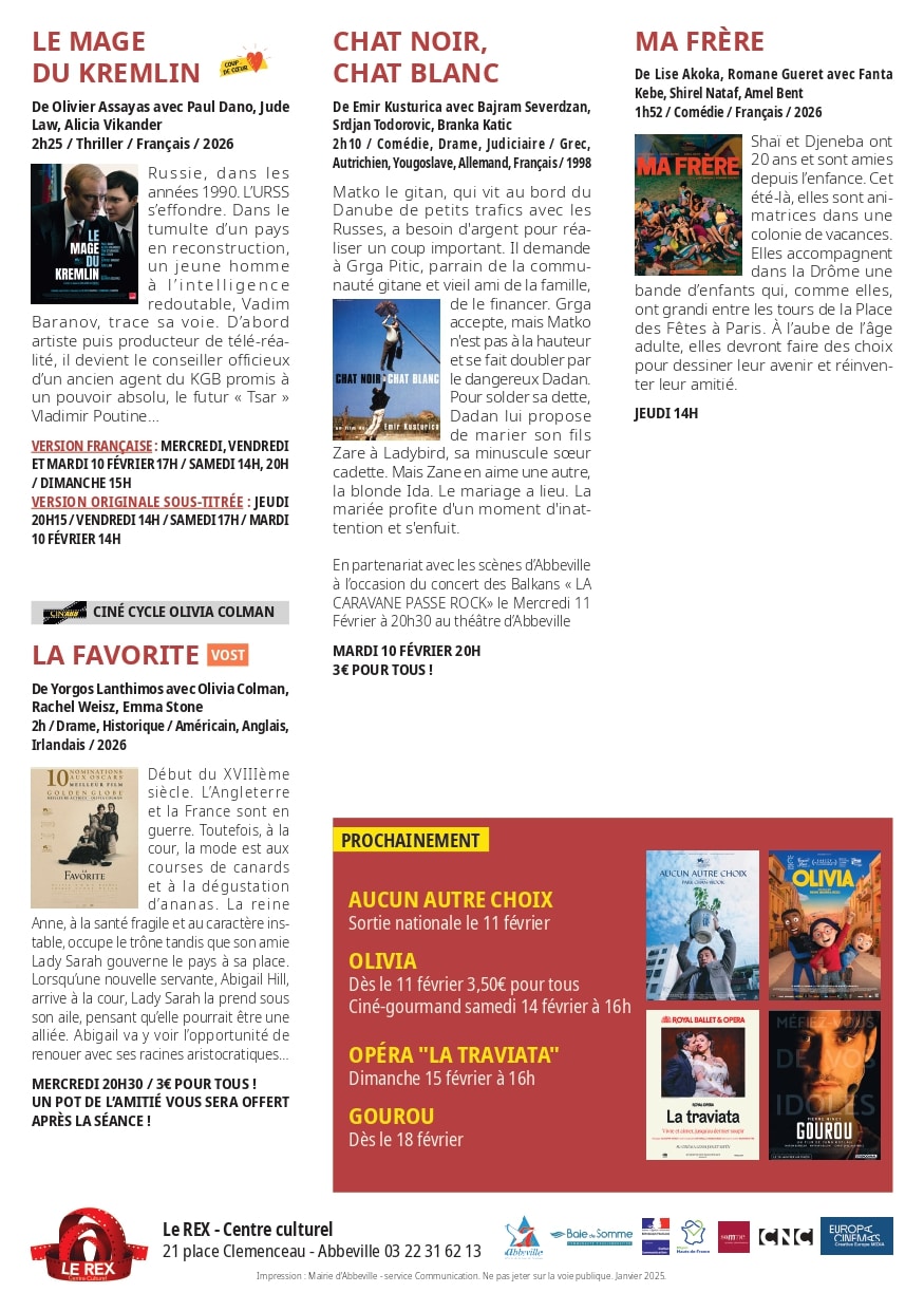 Programme cinéma Le Rex-Centre culturel du 4 au 10 février 2026