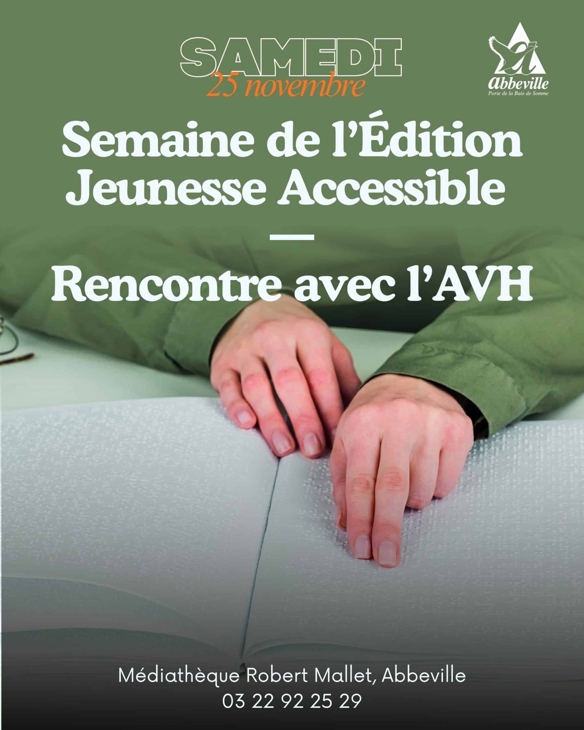 Dans le cadre de la Semaine de l’Édition Jeunesse Accessible, la médiathèque Robert Mallet accueillera le 25 novembre 2025 le comité de la Somme de l’Association Valentin Haüy (AVH).